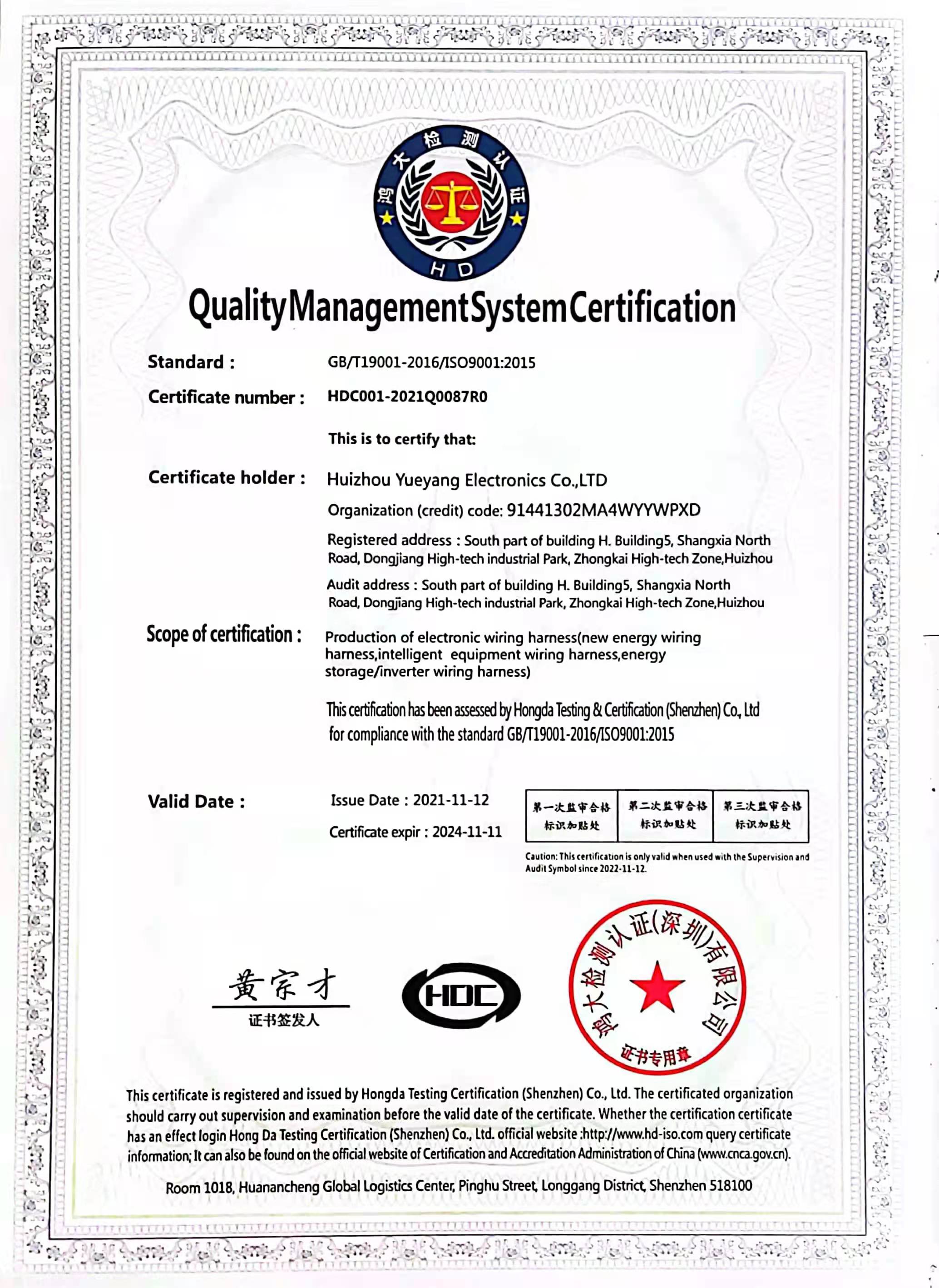 • 質量管理體系認證證書